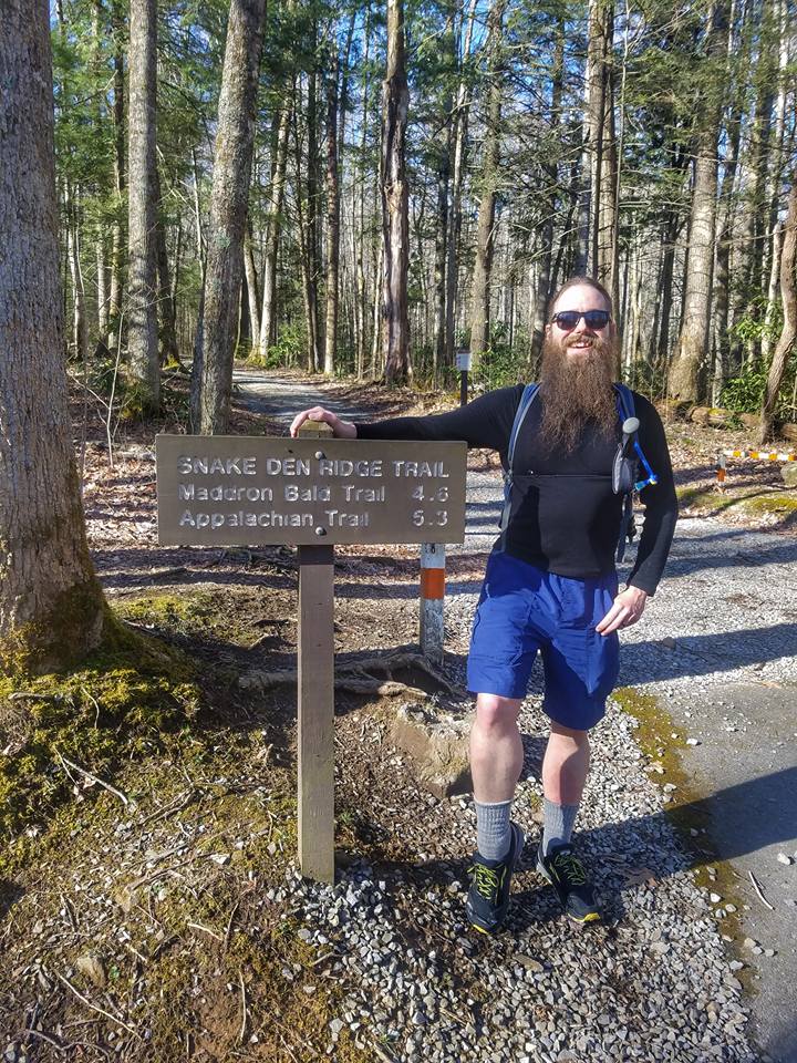 Pulling into Cosby Campground I found John stretching outside of his car and tossed him his biscuits. The two hour drive down had my legs tight and I strolled over into the woods for some warm up and to rid myself of coffee. When I returned John had fished out some books he had picked up a few weeks earlier and one was Hikes in the Big South Fork. He said he had already read several passages in it and thought we should take a road trip there soon. Honestly, that's one of the things I like best about him, he's always looking at what's next. As much as I wanted to sit down with a map and the book and make plans, we had a monumental day ahead of us, so I checked my locks and started the GPS track on my watch. I started up through the campground looking for our first trail of the day, Snake Den Ridge.